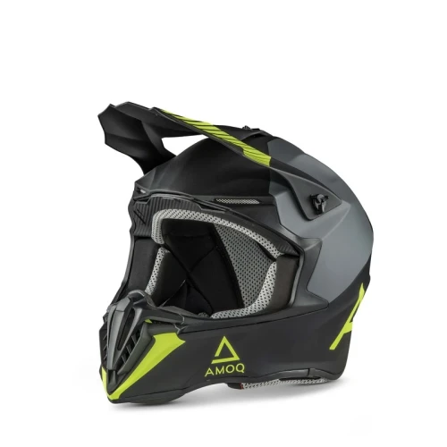 AMOQ Airframe är en extremt konkurrenskraftig och bekväm hjälm som fungerar utmärkt både för motocross och snöskoteråkning. Skalet har en aerodynamisk form, vilket gör det stabilt i hög hastighet. Skalet är tillverkat av termoplast, vilket bidrar till en låg vikt utan att kompromissa med säkerhetsfunktionerna. Inredningen är avtagbar och kan tvättas i maskin.