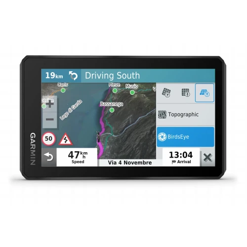 Du kan raskt bytte mellom veikart, topografiske kart og BirdsEye-satellittbilder, slik at du alltid har det perfekte kartet på turen.