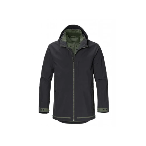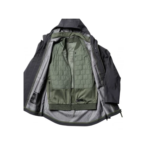 The water-repellent GORE-TEX Brussels jacket can be adjusted to suit a wide variety of outside temperatures thanks to the hood and removable thermal vest.